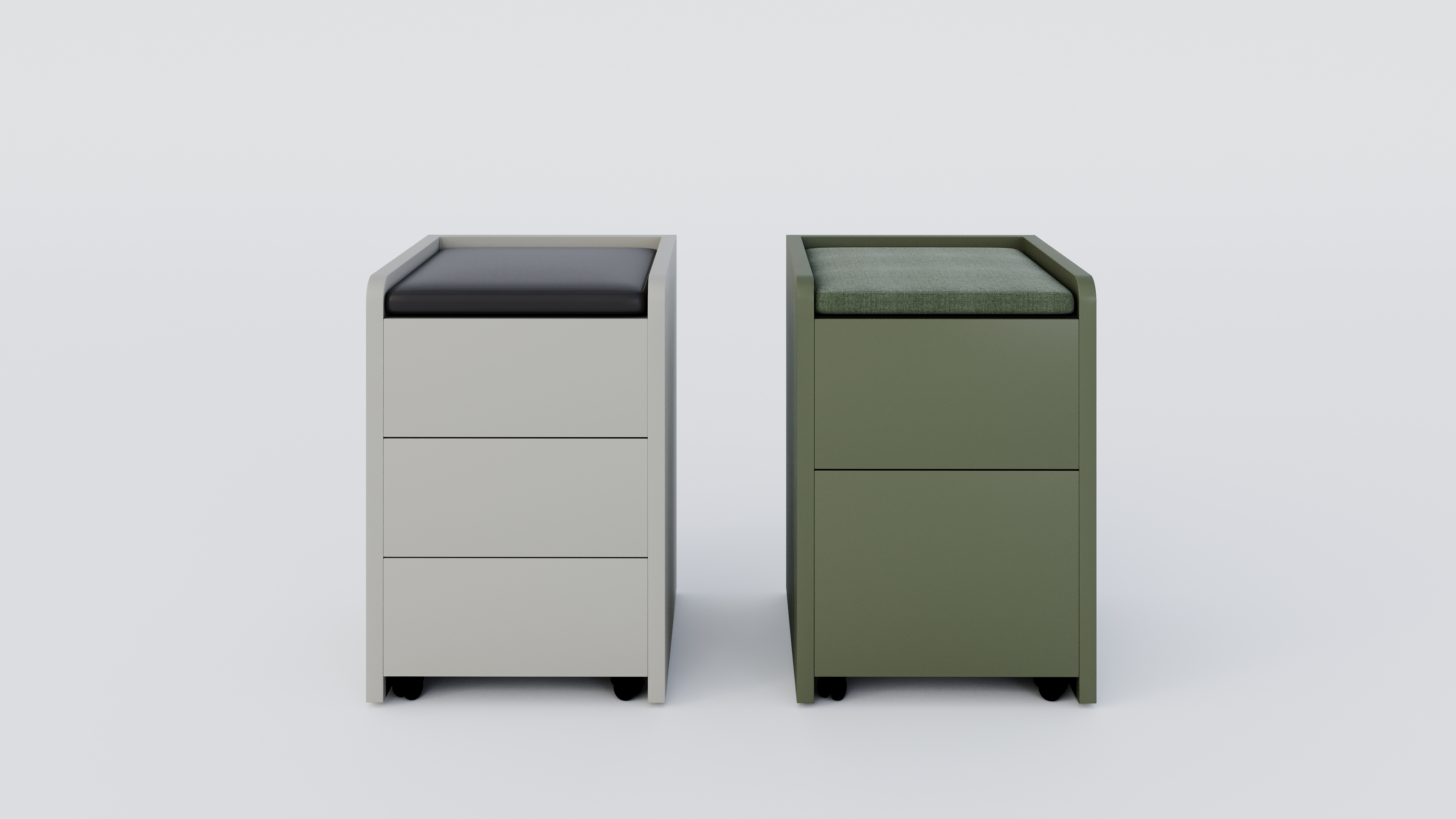 Minderli ahşap keson, çalışma alanlarında hem düzen hem de ek oturum ihtiyacını kompakt bir formda birleştirir. Üst yüzeyde yer alan entegre minder detayı, bekleme ve kısa süreli kullanım için konforlu bir alan sunar.