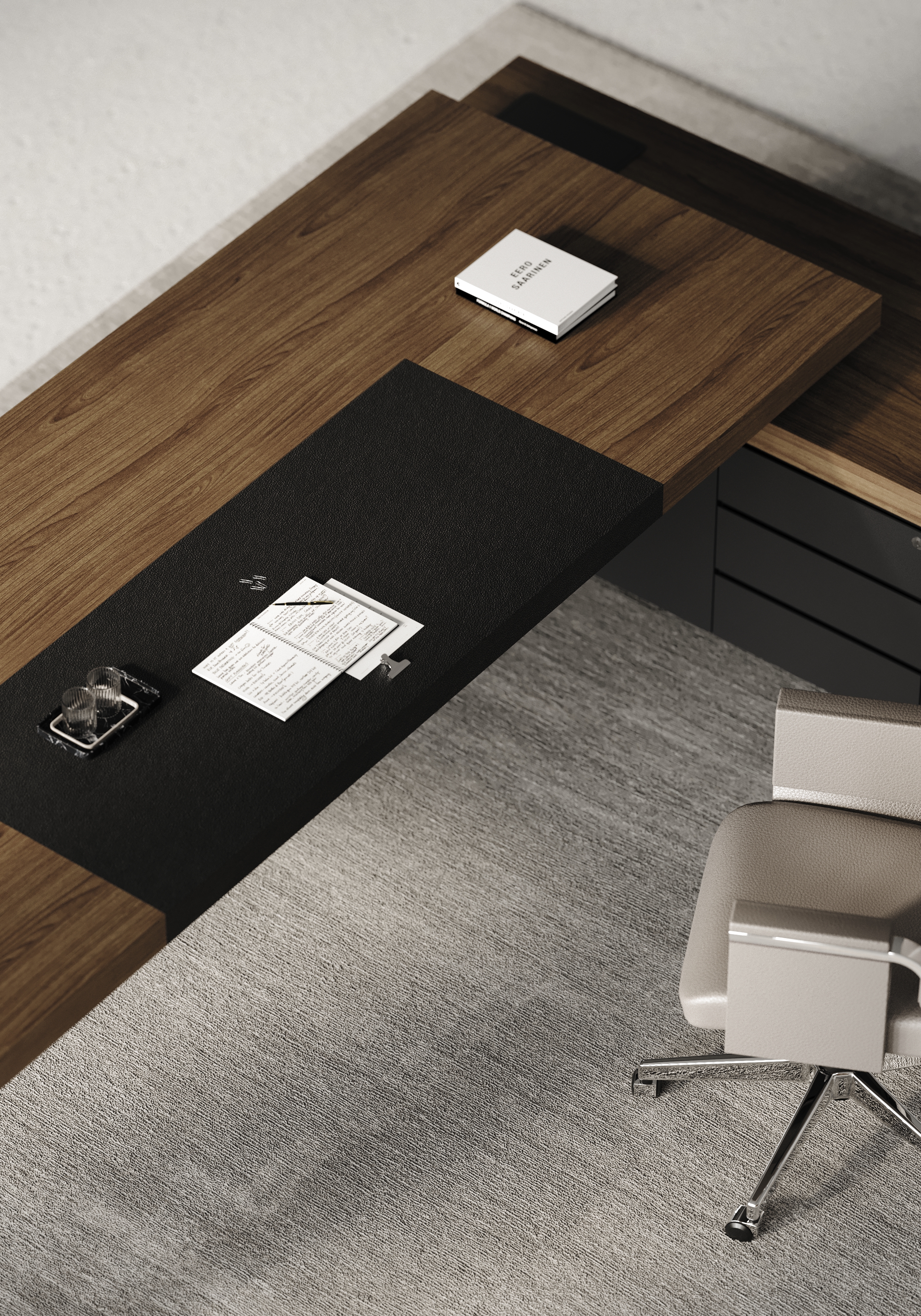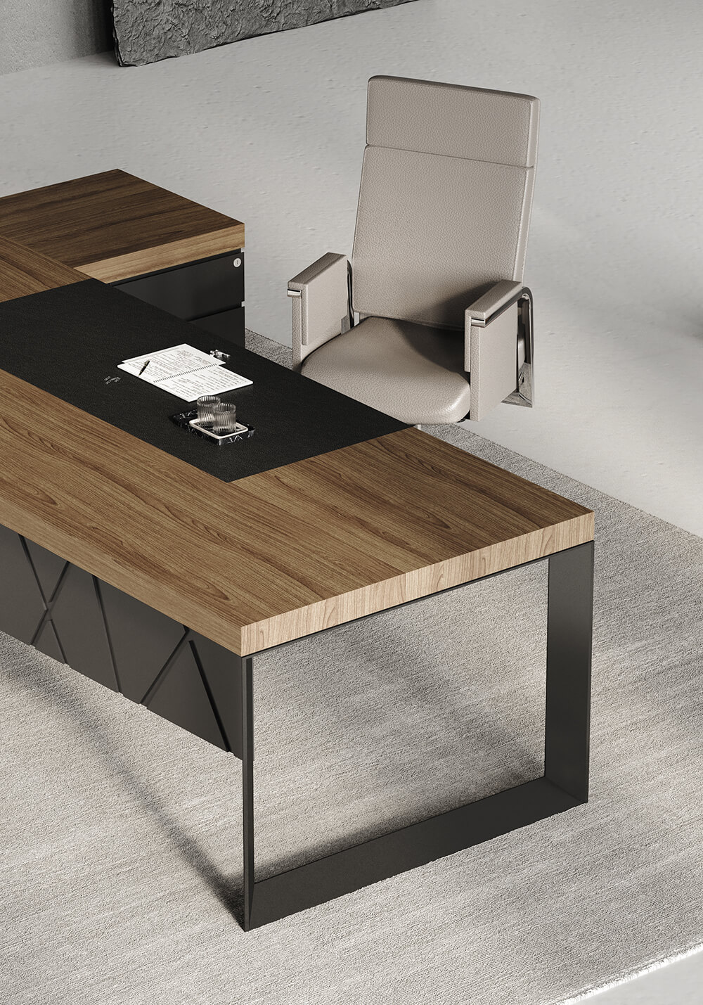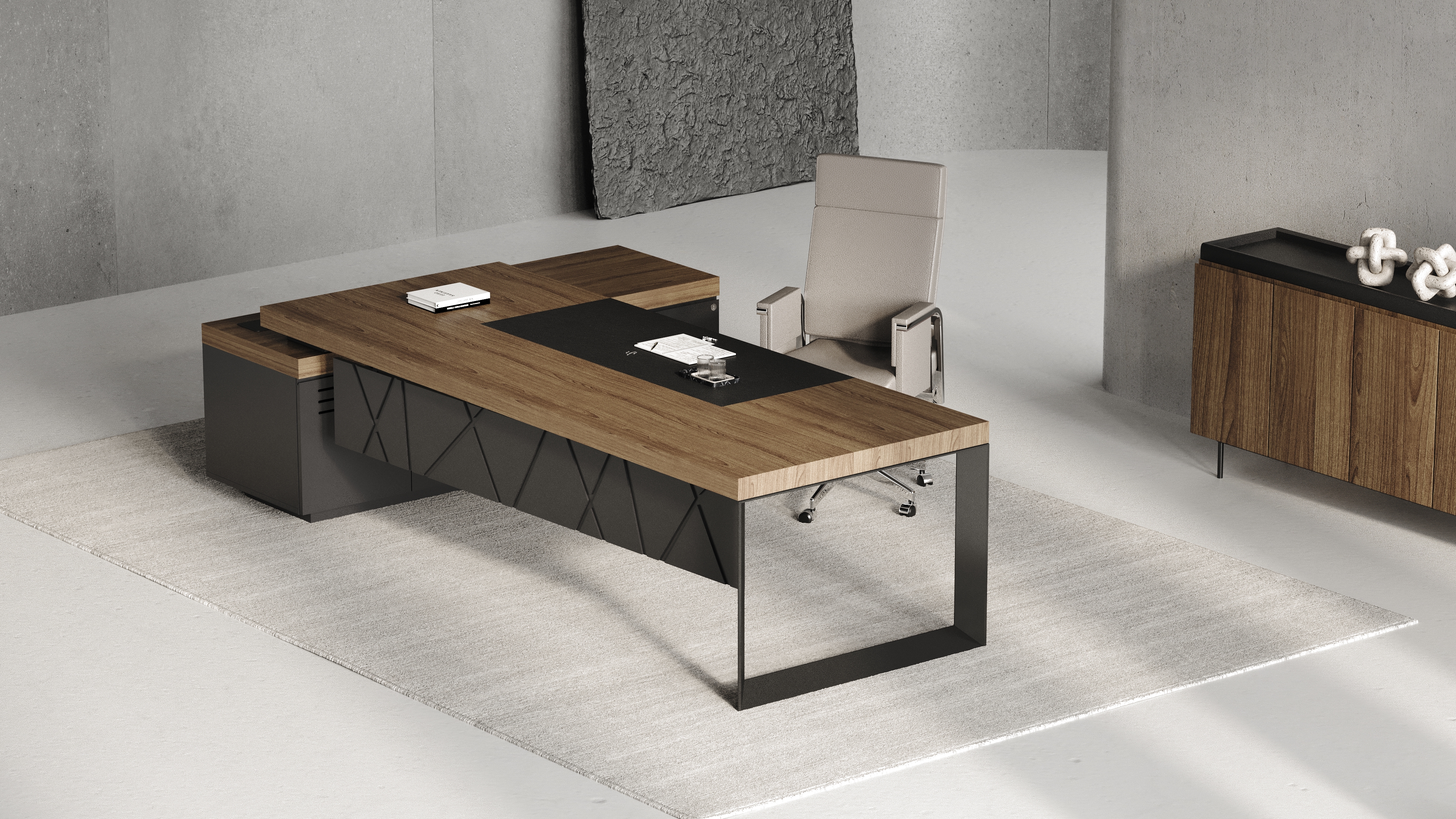 Core, zarafet ile işlevin buluştuğu rafine bir makam masasıdır.