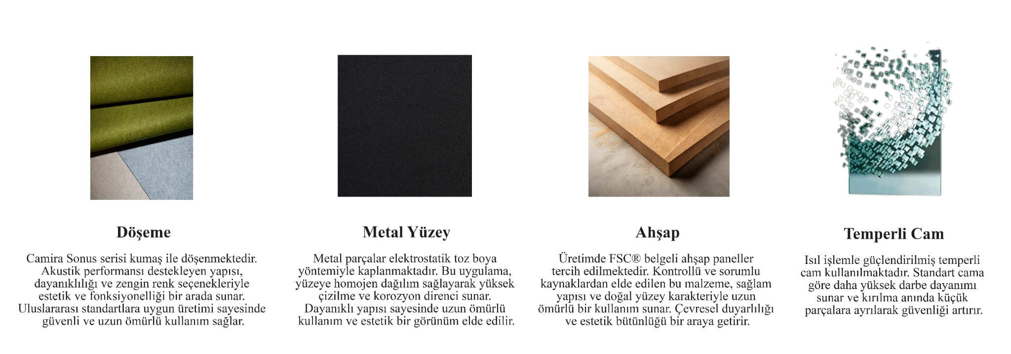 Karşılıklı sedir oturum düzeni ve geniş masa alanı; yüz yüze ve online toplantılar için konforlu bir çalışma ortamı sunar. Yüksek akustik izolasyon sayesinde dış gürültü minimuma indirilir, içeride net ve dengeli bir ses deneyimi sağlanır. Ferah iç hacmi hareket özgürlüğü sunarken, kompakt derinliği açık ofislerde dengeli bir yerleşim avantajı sağlar. Böylece bire bir görüşmeler ve odaklı ekip çalışmaları için kontrollü ve konforlu bir akustik alan oluşturur.