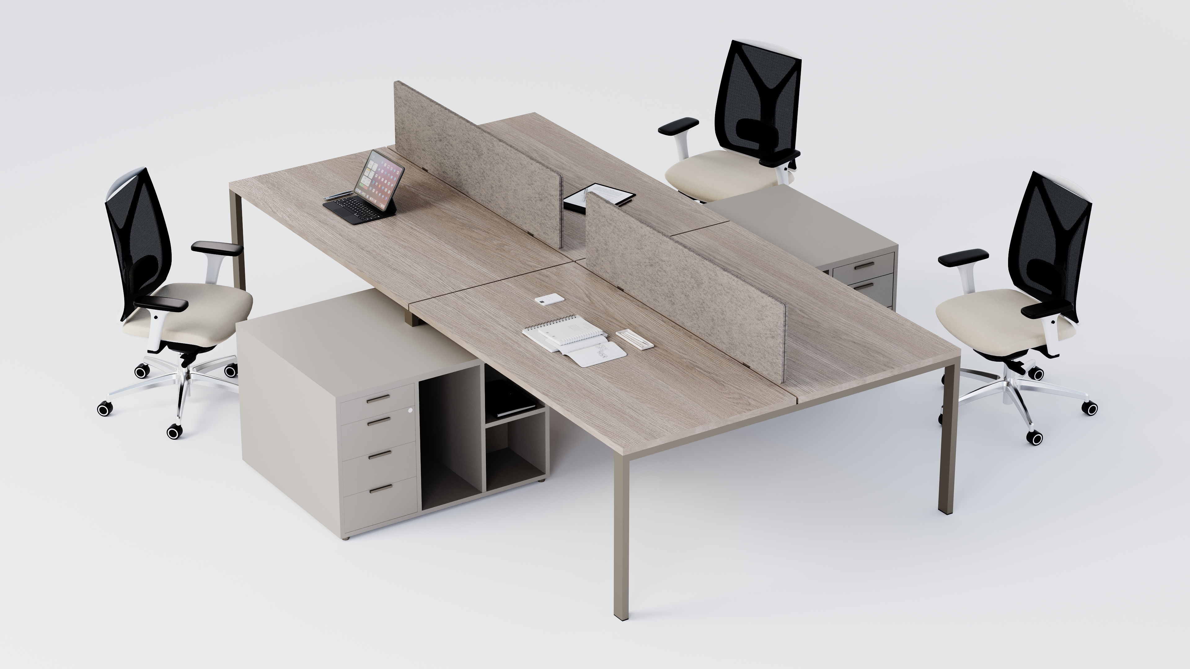 Gereksiz detaylardan arındırılmış formu, dayanıklı metal profil ayakları ve geniş ölçü seçenekleriyle kurumsal ofislerden startuplara, çağrı merkezlerinden banka şubelerine kadar her ölçekte ekibe uyum sağlar.