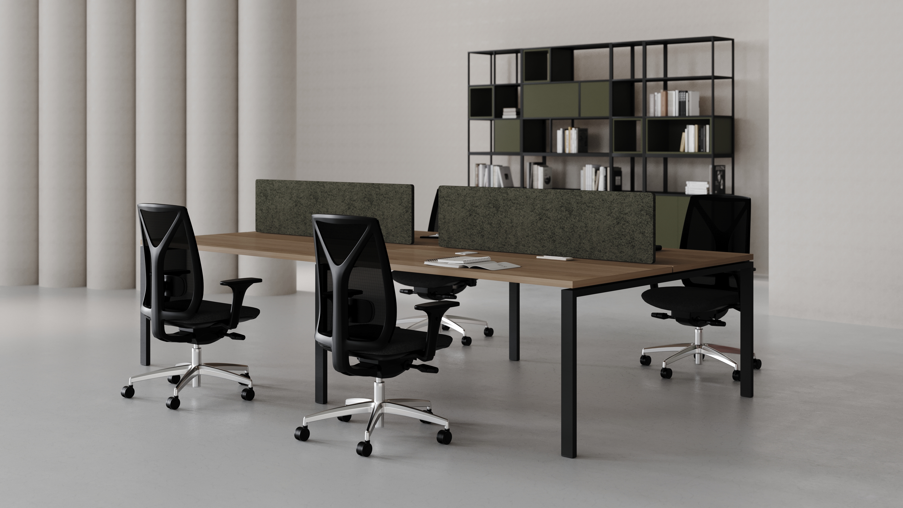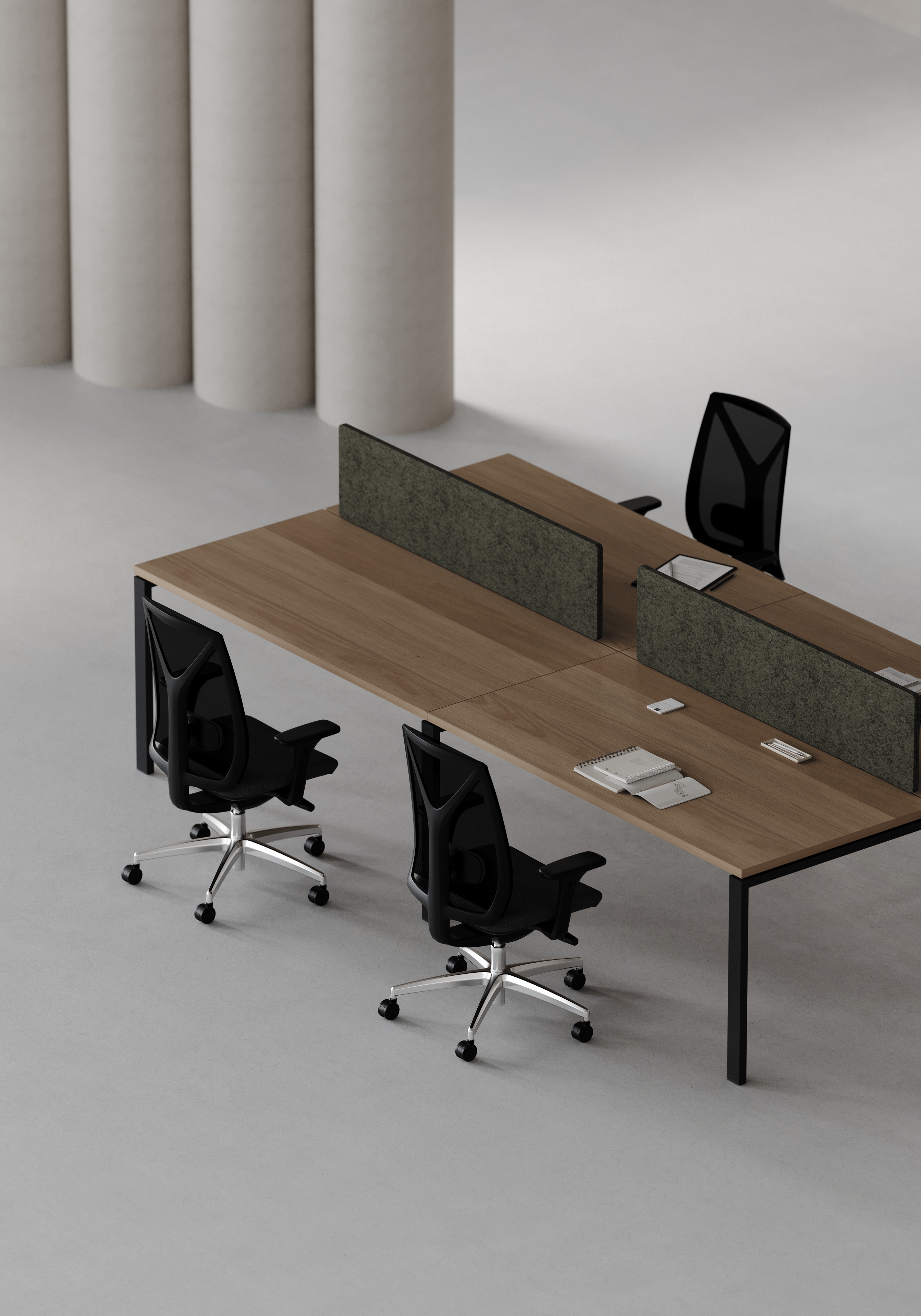 Uygun maliyetli üretim felsefesi ve hafif görsel dili sayesinde ofis ortamında ferahlık ve düzen hissi oluşturur.