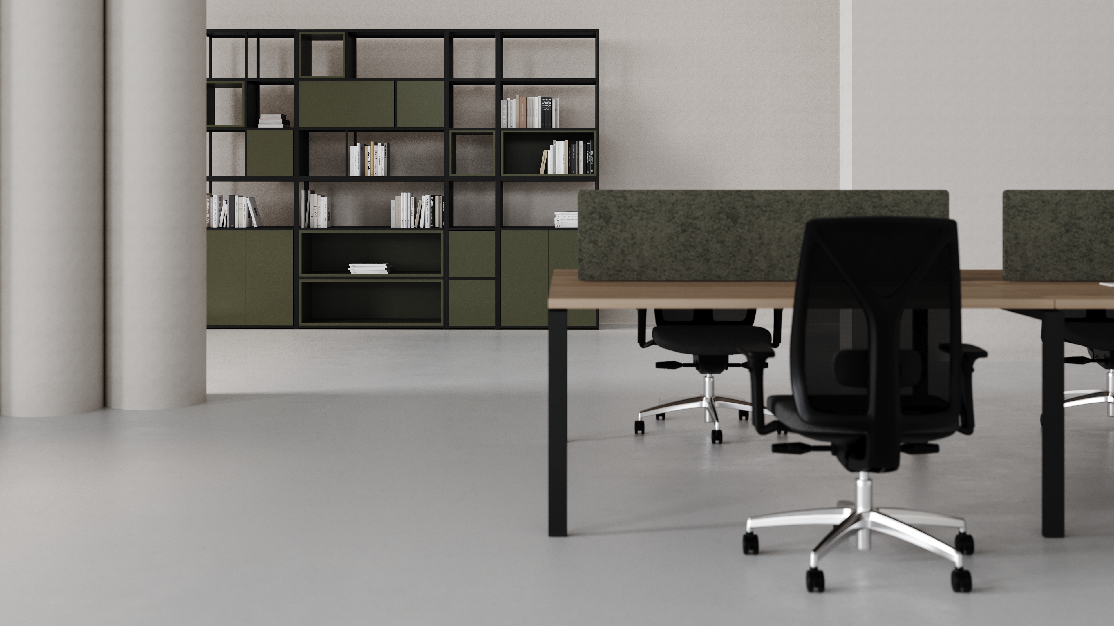 Depolama çözümleri, standart seperatörler ve renk seçenekleriyle her kurumun kendi kimliğine uyum sağlayan yalın bir çalışma alanı sunar.