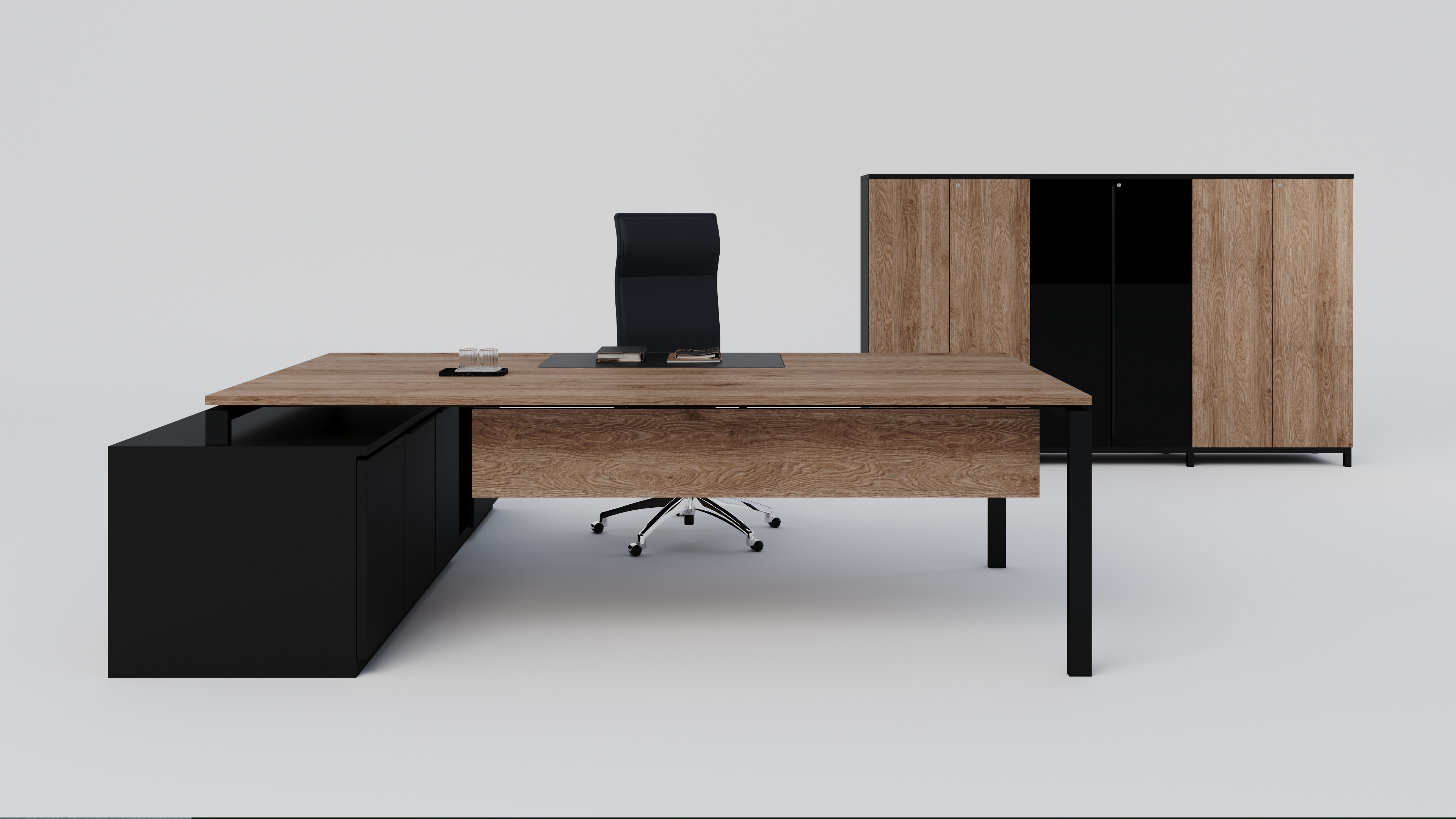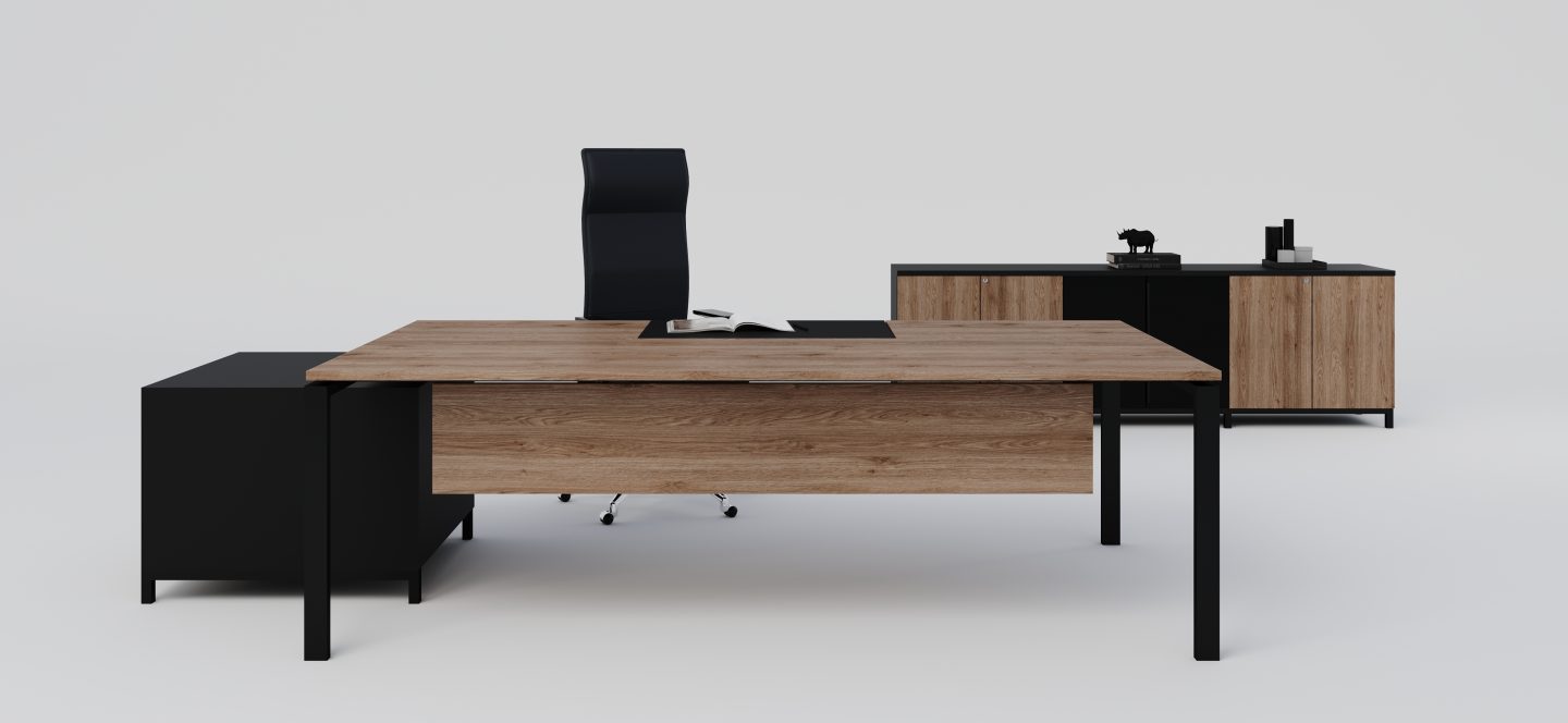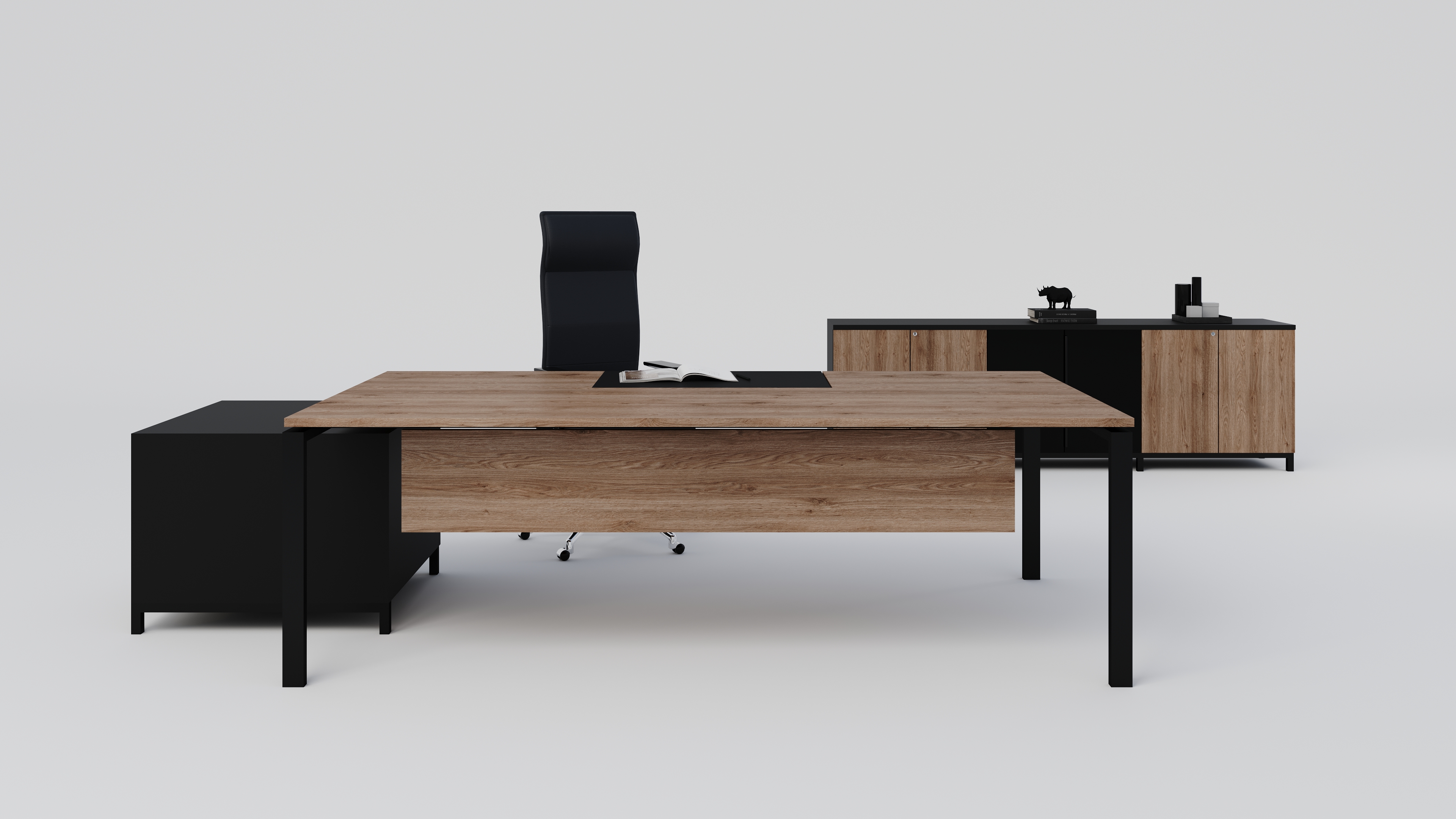 Serinin tüm yüzeylerinde kullanılan melamin ahşap dokusu, doğal bir sıcaklık hissi verir; toplantı, odaklanma ya da günlük çalışma senaryoları arasında kolaylıkla uyum sağlar. Çeşitli melamin alternatifleri ve metal ayaklarda geniş renk seçeneği, her kullanıcının kendi çalışma alanını kişiselleştirmesine olanak tanır.