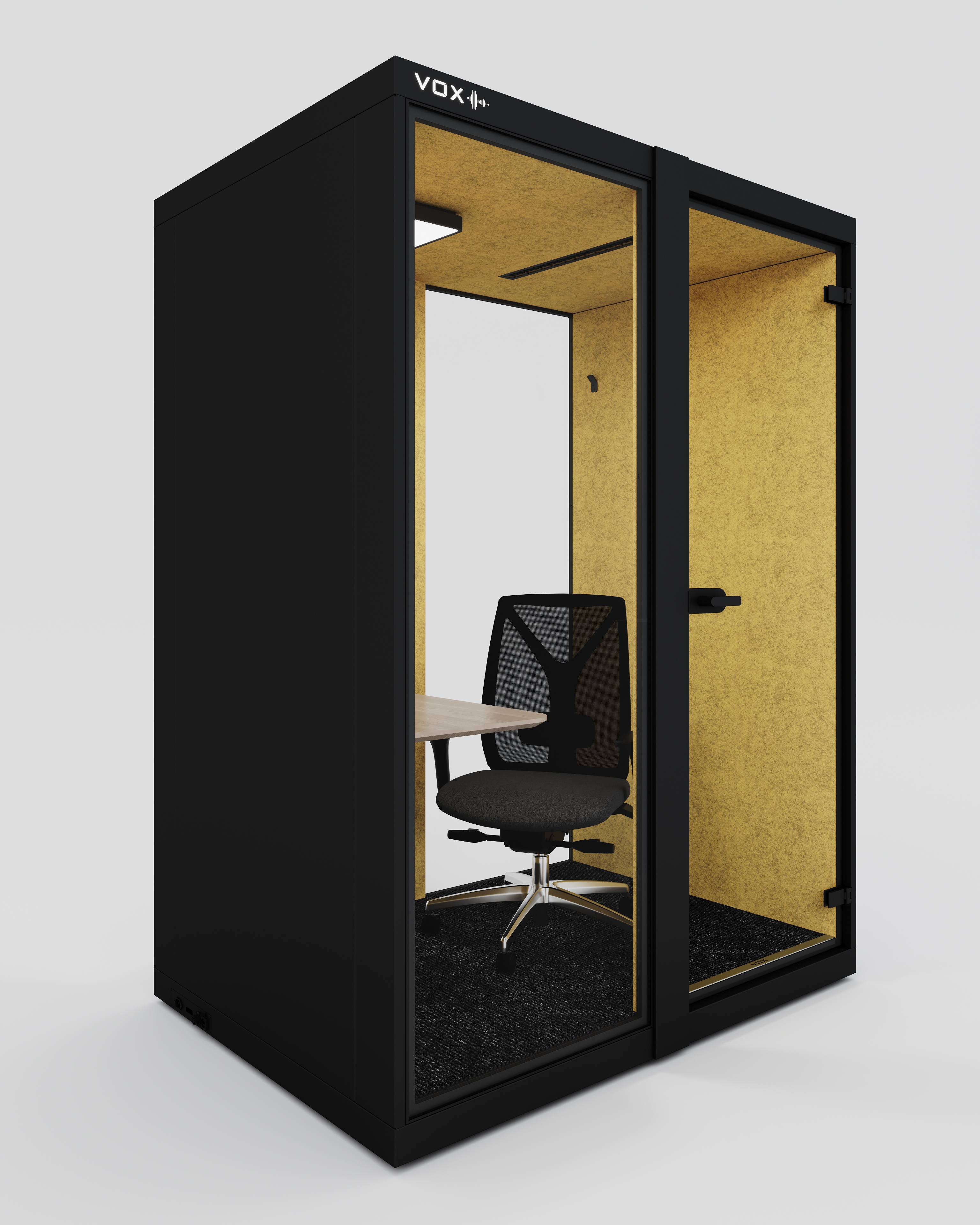 VOX Medium, tek kişilik kabin kategorisinde en geniş çözümümüzdür. 2,1x1,2 metre ölçüsü ile kullanıcıya yalnızca bir çalışma alanı değil, gerçek bir kişisel ofis deneyimi sunar.